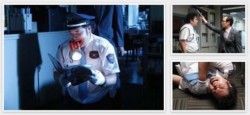 小杉深夜值班,发现资料「警卫连续被杀事件报告」,之后他拿着电筒,战战兢兢,走进办公室……